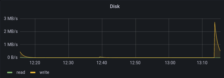 Disk tracks the rate that data is written to (plotted as write) or read from (plotted as read) the hard disk in units of MB/s.