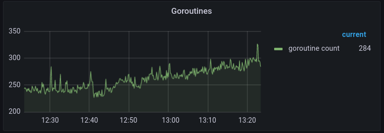 Tracks the total number of active goroutines being used by Go Centurion. Goroutines are lightweight threads managed by the Go runtime, they allow processes to execute concurrently.